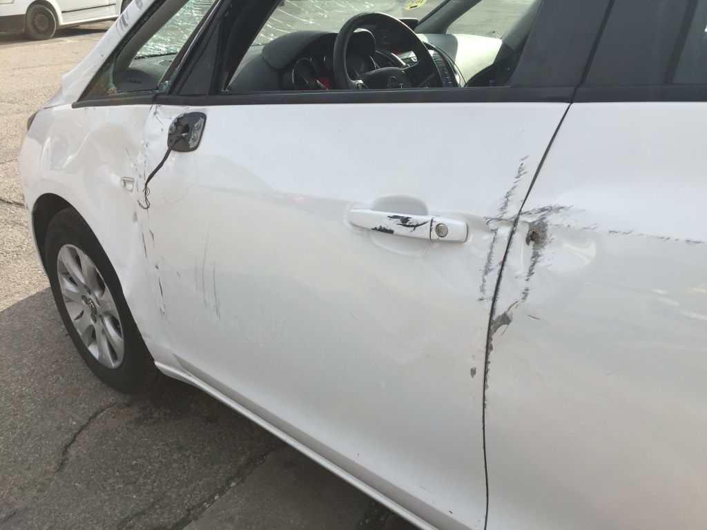 vehiculo con golpe lateral derecho,arranca y anda.
